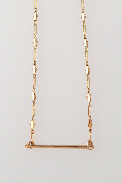 14k Yellow Gold bar on a fancy 16" 14k gold fill chain.